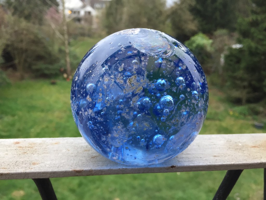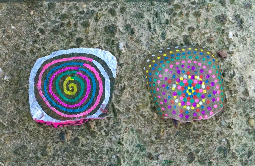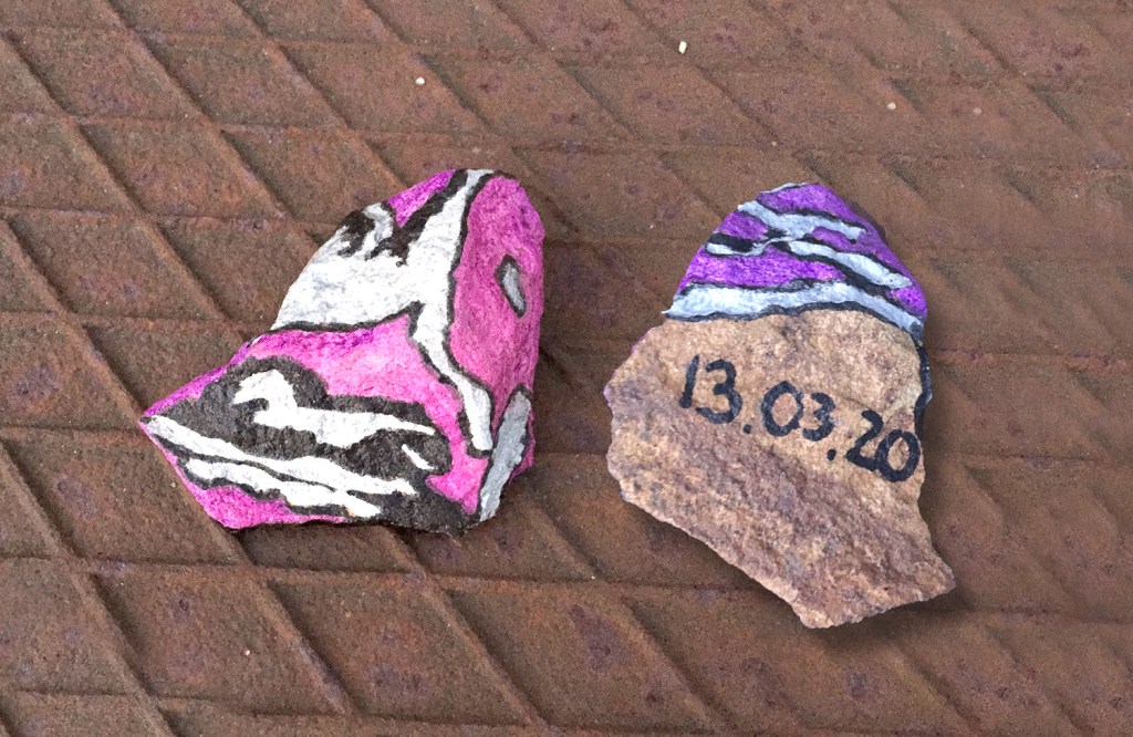 Gefunden auf meiner abendlichen Müll-Runde, ganz zufällig am Wegesrand. Danke, lieber unbekannter kreativer Mensch, für dieses hübsche Kleinod. Und deinen anderen bunten Stein habe ich auch gefunden …